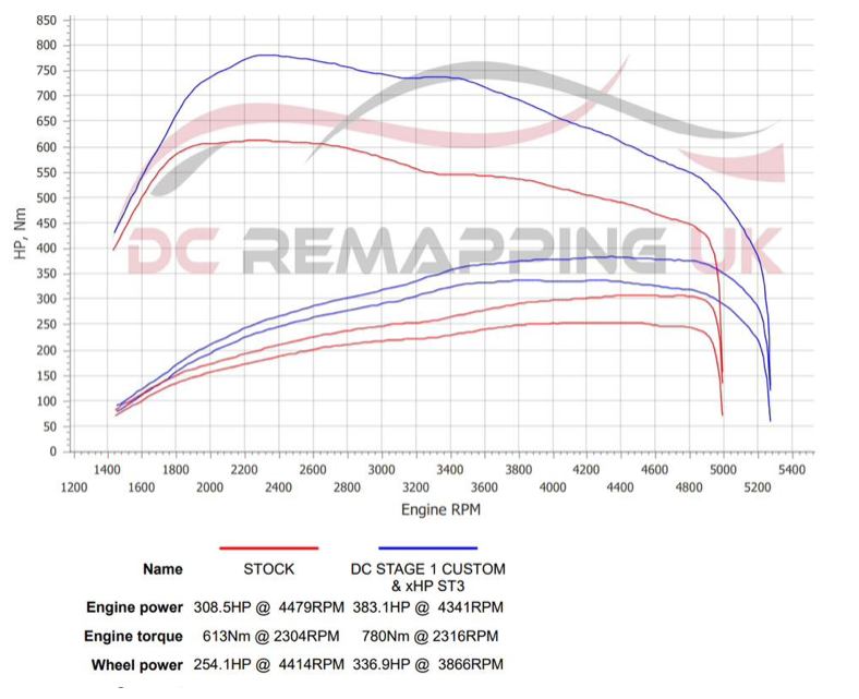 The BMW 435D initially delivered 308bhp and 613nm of torque. Through our meticulous custom tuning process, including adjustments to the Bosch EDC17CP45 ECU and xHP Stage 3 Gearbox tuning, the vehicle now boasts an impressive 383bhp and 780nm of torque. These upgrades were precisely implemented on our 4WD linked Vtech dyno, essential for maintaining the integrity of the xDrive system and ensuring accurate performance readings.